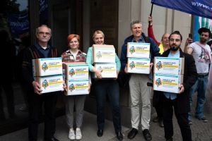 Fast 50.000 Unterschriften zum Internationalen Tag der Kriegsdienstverweigerung in Berlin übergeben